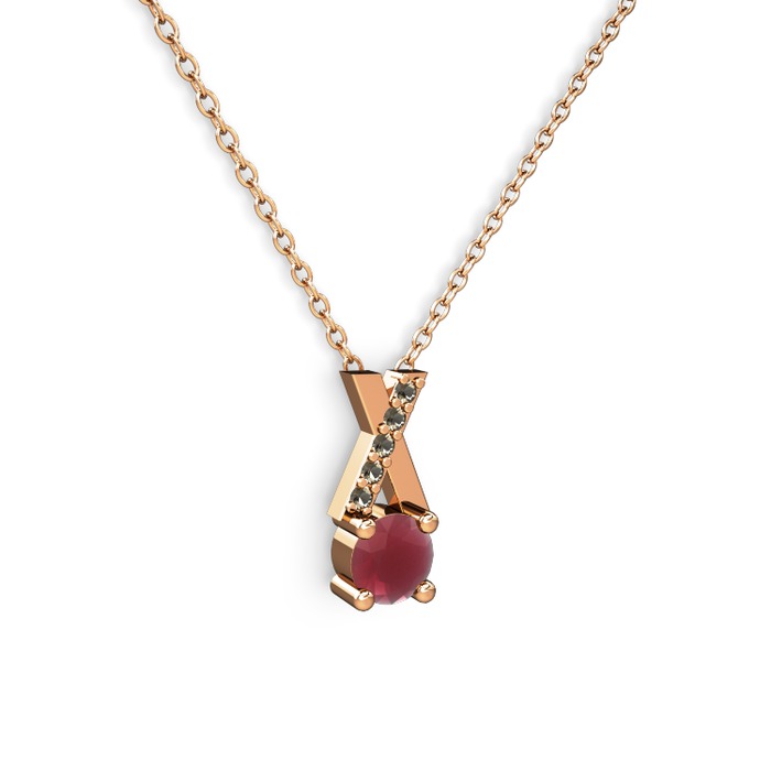 Kök yakut ve dumanlı kuvars 8 ayar rose altın kolye (40 cm rose altın rolo zincir)
