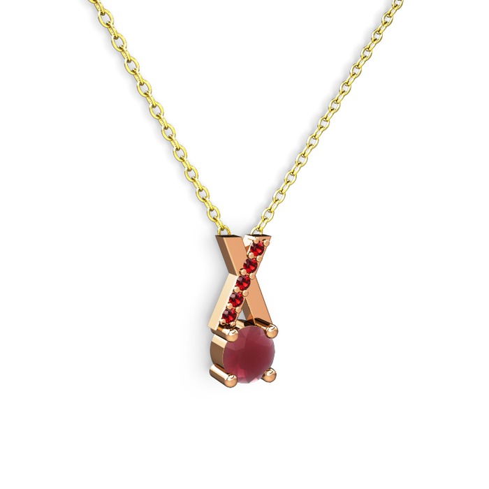 Kök yakut ve garnet 18 ayar rose altın kolye (40 cm altın rolo zincir)
