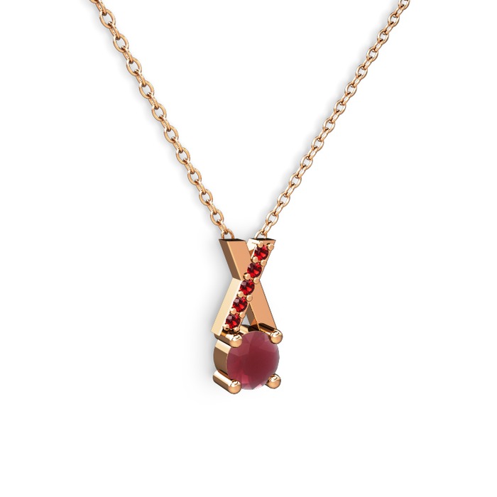 Kök yakut ve garnet 18 ayar rose altın kolye (40 cm rose altın rolo zincir)