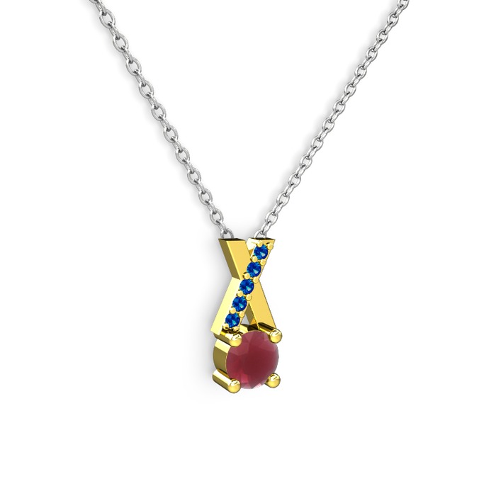 Kök yakut ve lab safir 14 ayar altın kolye (40 cm gümüş rolo zincir)