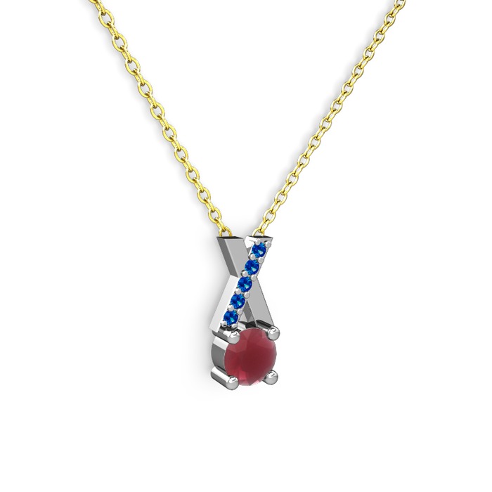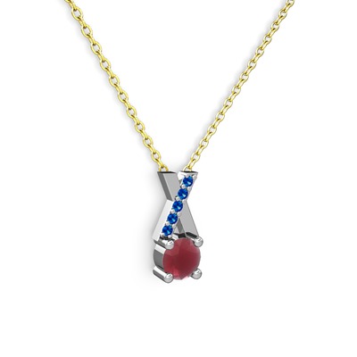 Kök yakut ve lab safir 18 ayar beyaz altın kolye (40 cm altın rolo zincir)