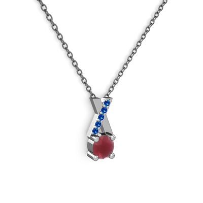 Kök yakut ve lab safir 18 ayar beyaz altın kolye (40 cm gümüş rolo zincir)