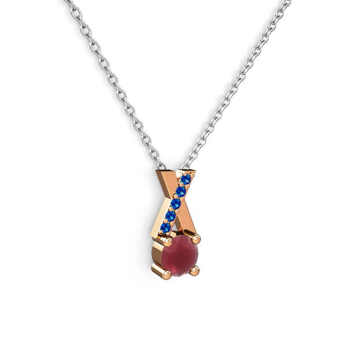 Kök yakut ve lab safir 8 ayar rose altın kolye (40 cm gümüş rolo zincir)