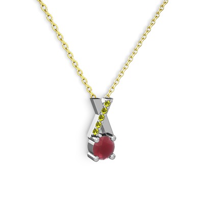 Kök yakut ve peridot 8 ayar beyaz altın kolye (40 cm altın rolo zincir)