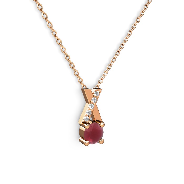 Kök yakut ve pırlanta 18 ayar rose altın kolye (0.075 karat, 40 cm rose altın rolo zincir)