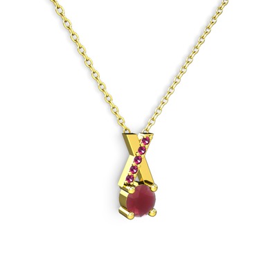 Kök yakut ve rodolit garnet 14 ayar altın kolye (40 cm altın rolo zincir)