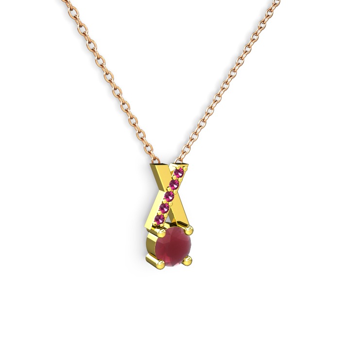 Kök yakut ve rodolit garnet 14 ayar altın kolye (40 cm gümüş rolo zincir)