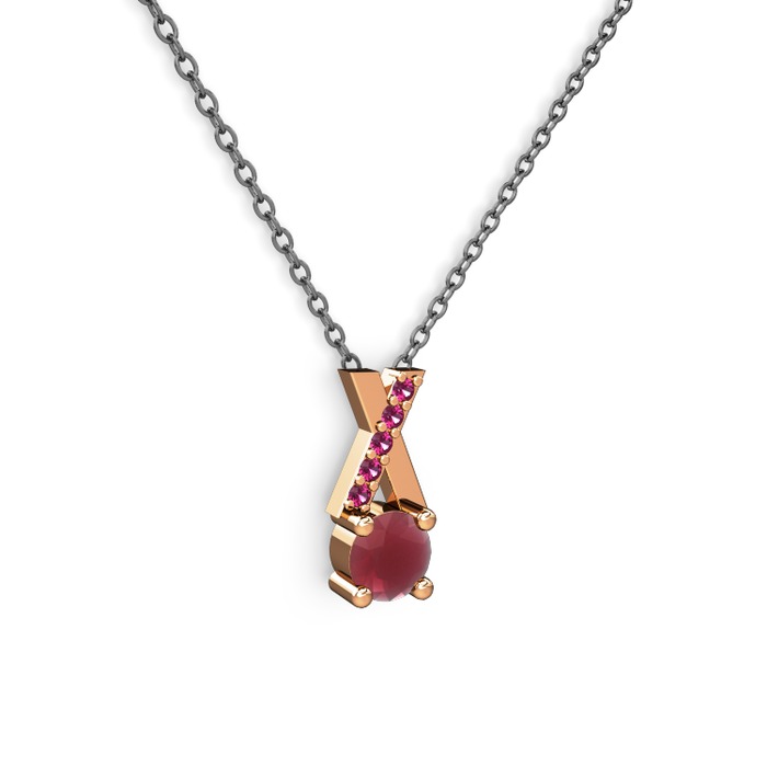 Kök yakut ve rodolit garnet 18 ayar rose altın kolye (40 cm gümüş rolo zincir)