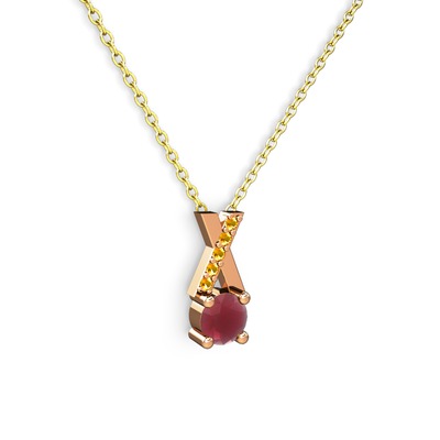 Kök yakut ve sitrin 14 ayar rose altın kolye (40 cm altın rolo zincir)