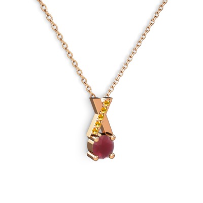 Kök yakut ve sitrin 14 ayar rose altın kolye (40 cm gümüş rolo zincir)