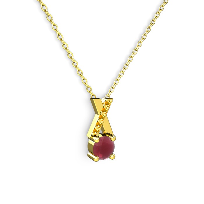 Kök yakut ve sitrin 18 ayar altın kolye (40 cm gümüş rolo zincir)