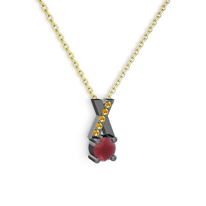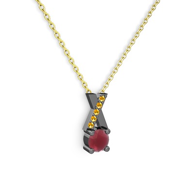 Kök yakut ve sitrin 925 ayar siyah rodyum kaplama gümüş kolye (40 cm altın rolo zincir)