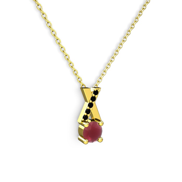 Kök yakut ve siyah zirkon 18 ayar altın kolye (40 cm altın rolo zincir)