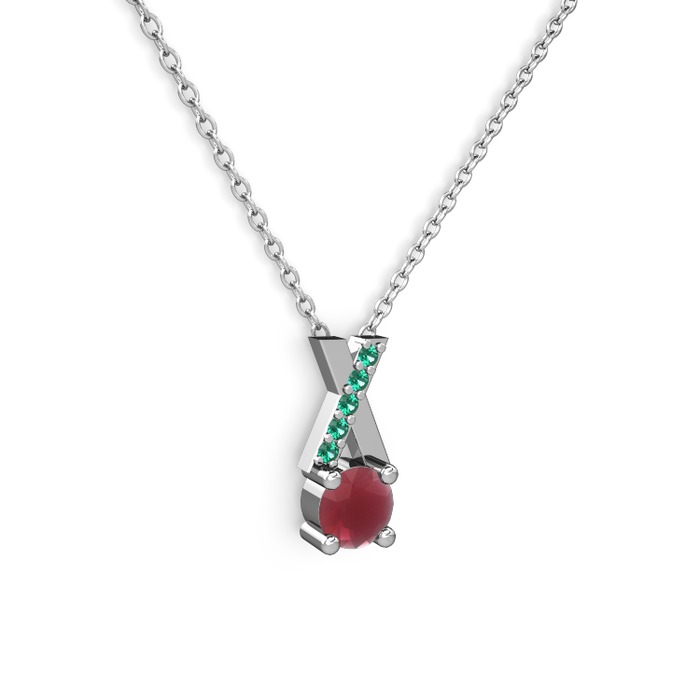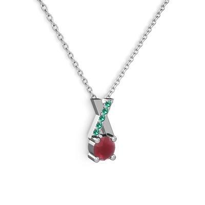 Kök yakut ve yeşil kuvars 18 ayar beyaz altın kolye (40 cm beyaz altın rolo zincir)
