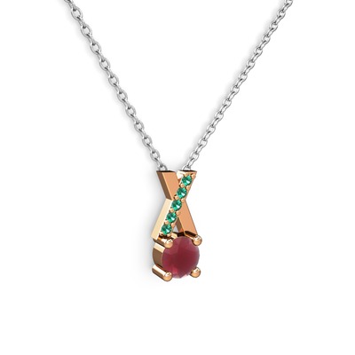 Kök yakut ve yeşil kuvars 18 ayar rose altın kolye (40 cm beyaz altın rolo zincir)