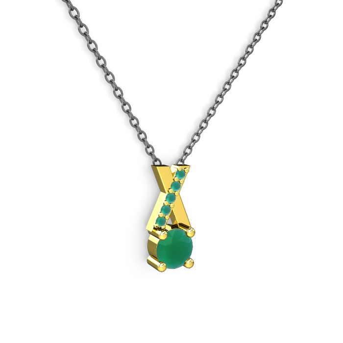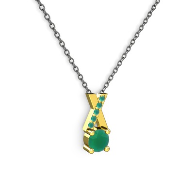 Kök zümrüt 18 ayar altın kolye (40 cm gümüş rolo zincir)
