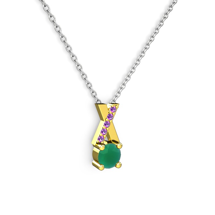 Kök zümrüt ve ametist 8 ayar altın kolye (40 cm beyaz altın rolo zincir)
