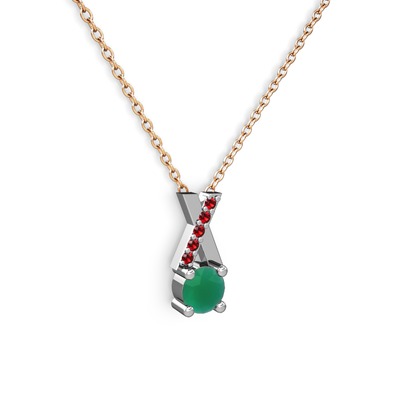 Kök zümrüt ve garnet 14 ayar beyaz altın kolye (40 cm rose altın rolo zincir)