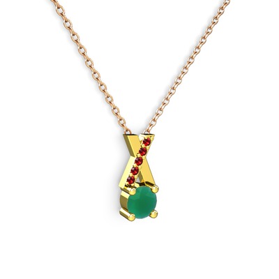 Kök zümrüt ve garnet 18 ayar altın kolye (40 cm rose altın rolo zincir)