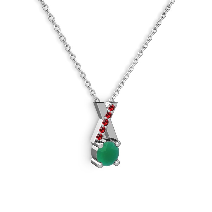 Kök zümrüt ve garnet 18 ayar beyaz altın kolye (40 cm beyaz altın rolo zincir)