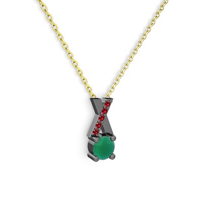 Kök zümrüt ve garnet 925 ayar siyah rodyum kaplama gümüş kolye (40 cm altın rolo zincir)