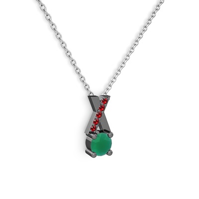 Kök zümrüt ve garnet 925 ayar siyah rodyum kaplama gümüş kolye (40 cm beyaz altın rolo zincir)