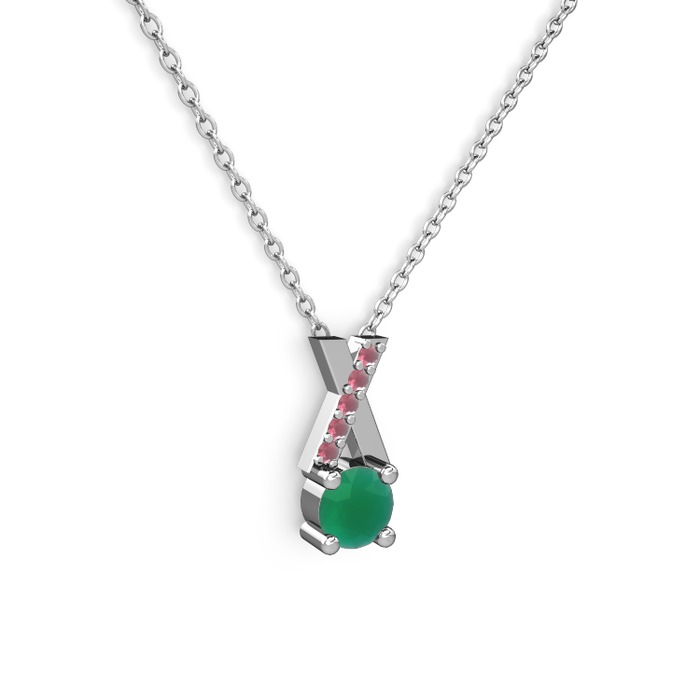 Kök zümrüt ve kök yakut 18 ayar beyaz altın kolye (40 cm beyaz altın rolo zincir)