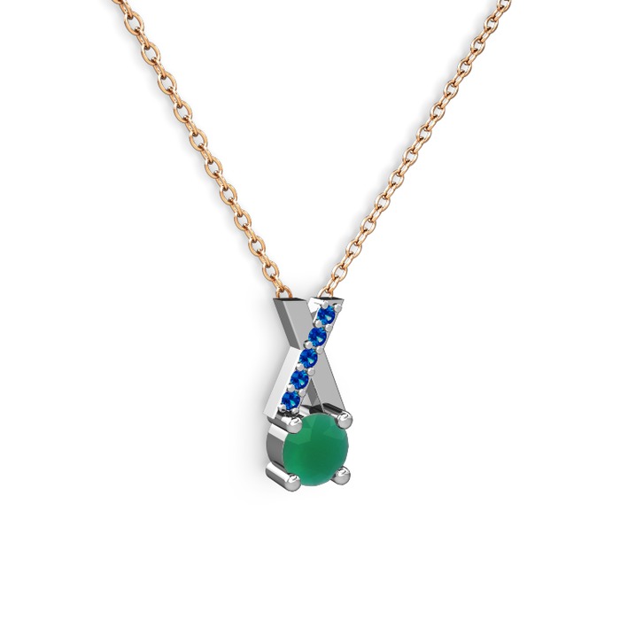 Kök zümrüt ve lab safir 18 ayar beyaz altın kolye (40 cm rose altın rolo zincir)