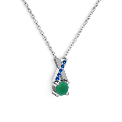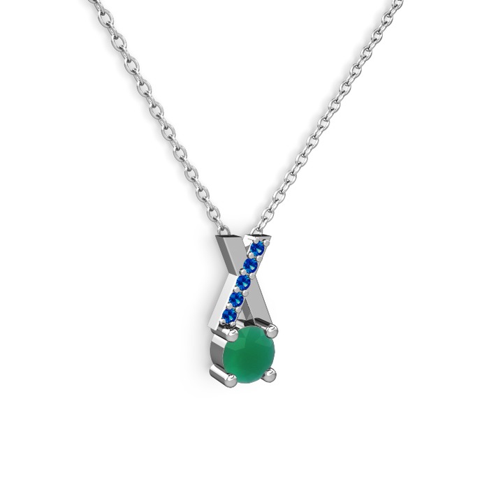 Kök zümrüt ve lab safir 925 ayar gümüş kolye (40 cm beyaz altın rolo zincir)