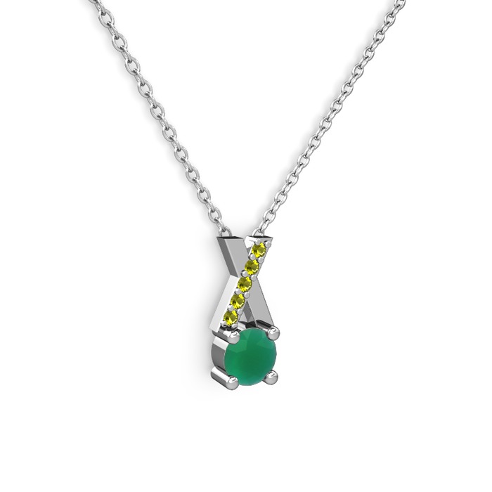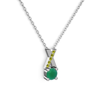 Kök zümrüt ve peridot 8 ayar beyaz altın kolye (40 cm gümüş rolo zincir)