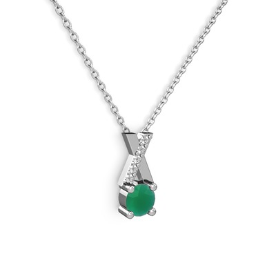 Kök zümrüt ve pırlanta 925 ayar gümüş kolye (0.075 karat, 40 cm gümüş rolo zincir)
