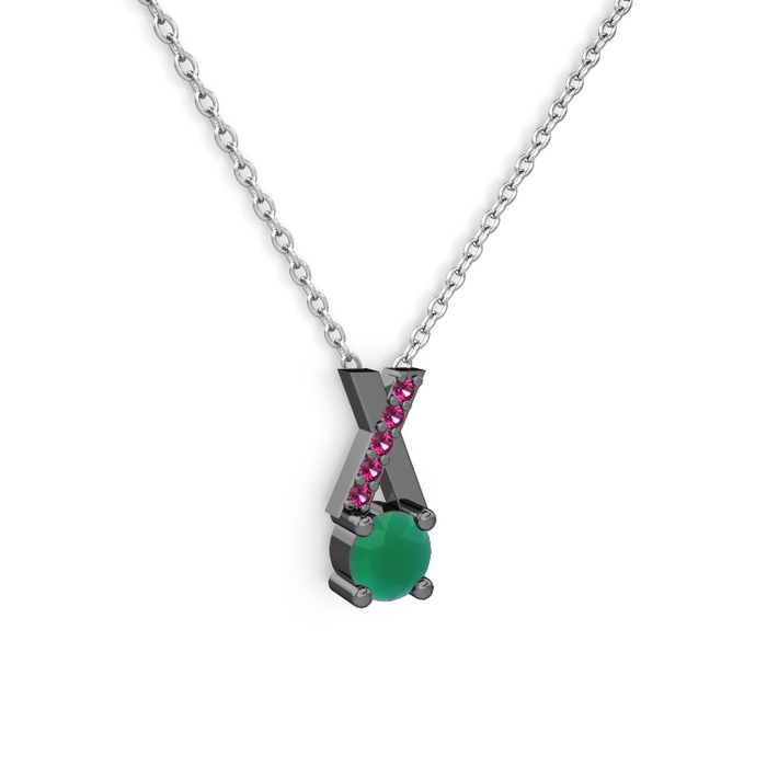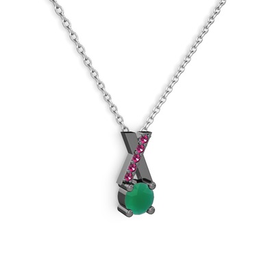 Kök zümrüt ve rodolit garnet 925 ayar siyah rodyum kaplama gümüş kolye (40 cm gümüş rolo zincir)