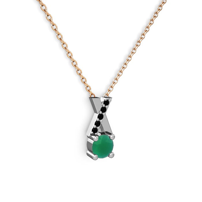 Kök zümrüt ve siyah zirkon 14 ayar beyaz altın kolye (40 cm gümüş rolo zincir)