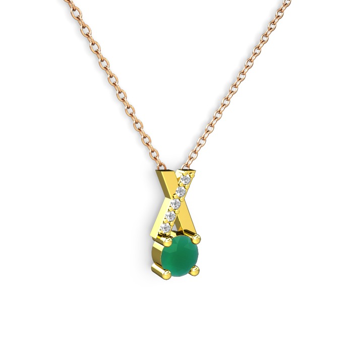 Kök zümrüt ve swarovski 18 ayar altın kolye (40 cm gümüş rolo zincir)