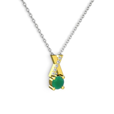 Kök zümrüt ve swarovski 925 ayar altın kaplama gümüş kolye (40 cm beyaz altın rolo zincir)