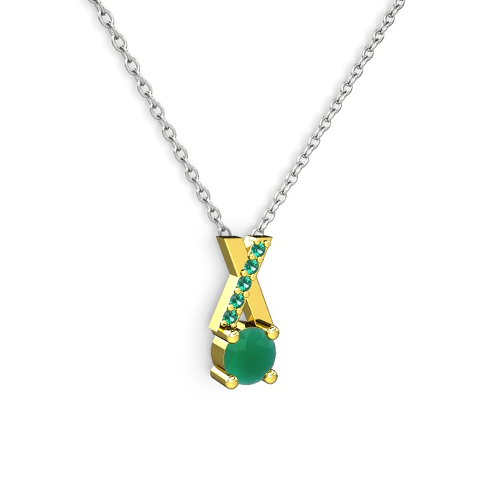 Kök zümrüt ve yeşil kuvars 14 ayar altın kolye (40 cm gümüş rolo zincir)