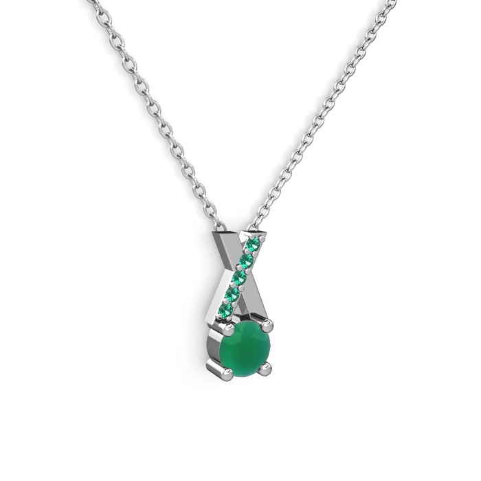 Kök zümrüt ve yeşil kuvars 14 ayar beyaz altın kolye (40 cm beyaz altın rolo zincir)