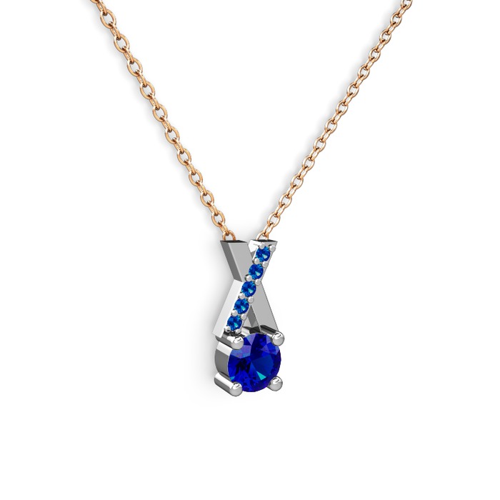 Lab safir 18 ayar beyaz altın kolye (40 cm rose altın rolo zincir)