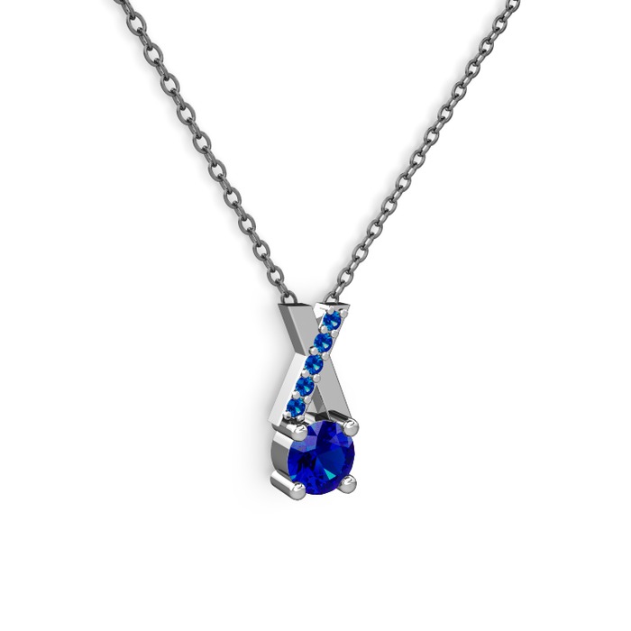 Lab safir 8 ayar beyaz altın kolye (40 cm gümüş rolo zincir)