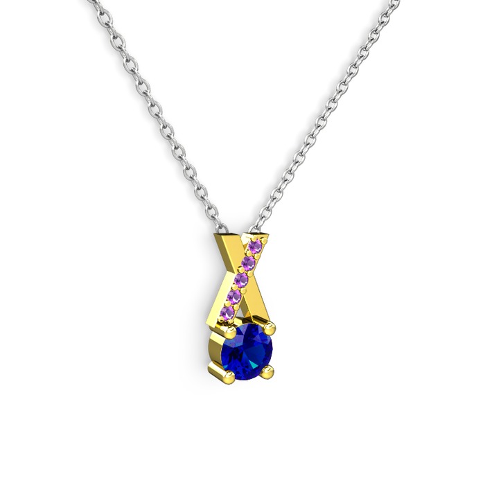 Lab safir ve ametist 925 ayar altın kaplama gümüş kolye (40 cm beyaz altın rolo zincir)