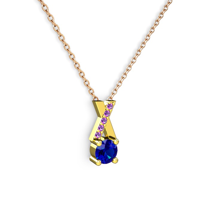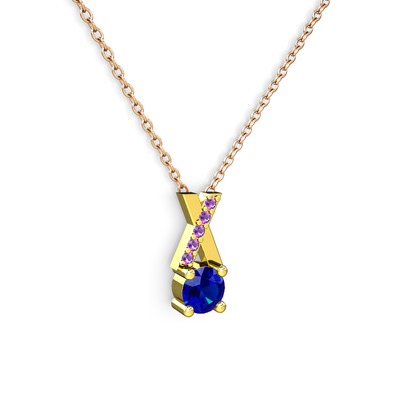 Lab safir ve ametist 925 ayar altın kaplama gümüş kolye (40 cm rose altın rolo zincir)