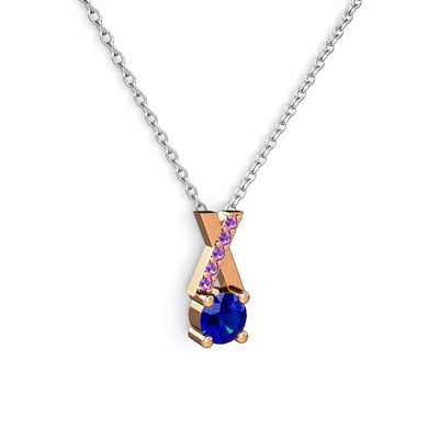 Lab safir ve ametist 925 ayar rose altın kaplama gümüş kolye (40 cm beyaz altın rolo zincir)