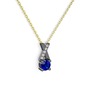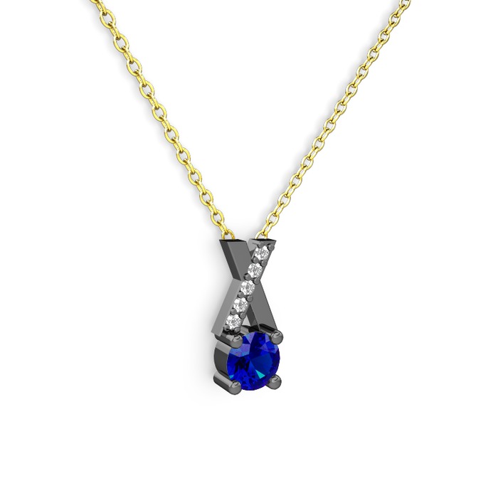 Lab safir ve beyaz zirkon 925 ayar siyah rodyum kaplama gümüş kolye (40 cm altın rolo zincir)