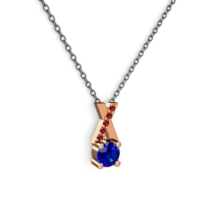 Lab safir ve garnet 14 ayar rose altın kolye (40 cm gümüş rolo zincir)