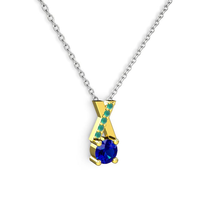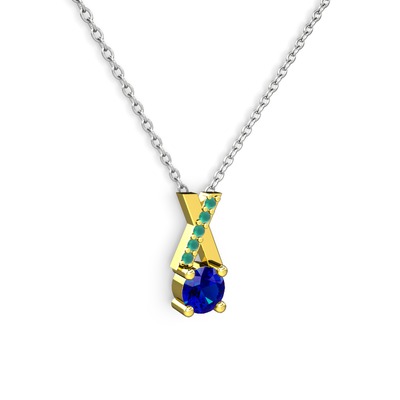 Lab safir ve kök zümrüt 14 ayar altın kolye (40 cm beyaz altın rolo zincir)