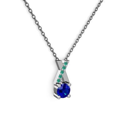Lab safir ve kök zümrüt 8 ayar beyaz altın kolye (40 cm gümüş rolo zincir)