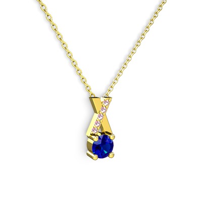 Lab safir ve pembe kuvars 18 ayar altın kolye (40 cm gümüş rolo zincir)