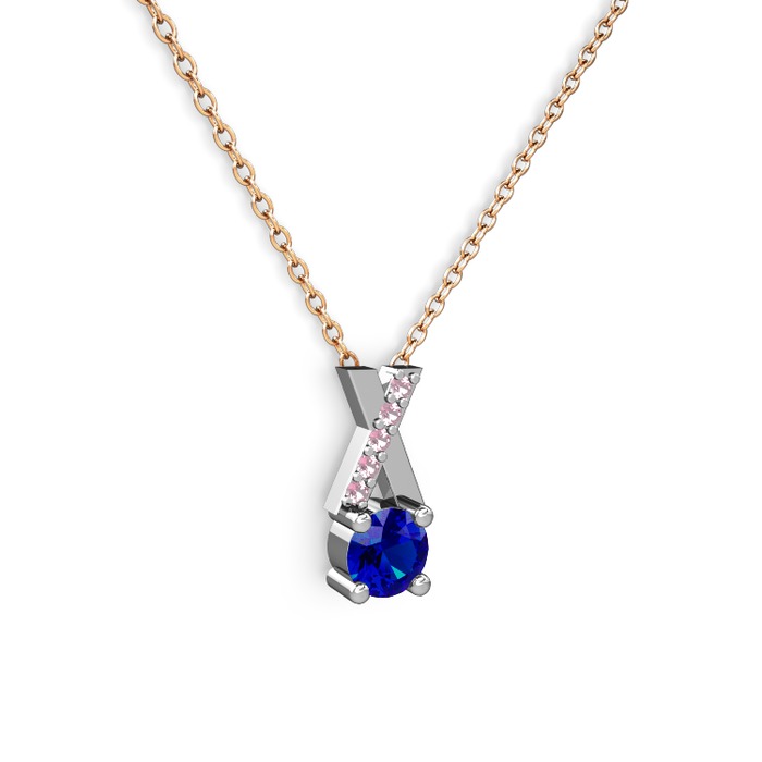 Lab safir ve pembe kuvars 925 ayar gümüş kolye (40 cm rose altın rolo zincir)
