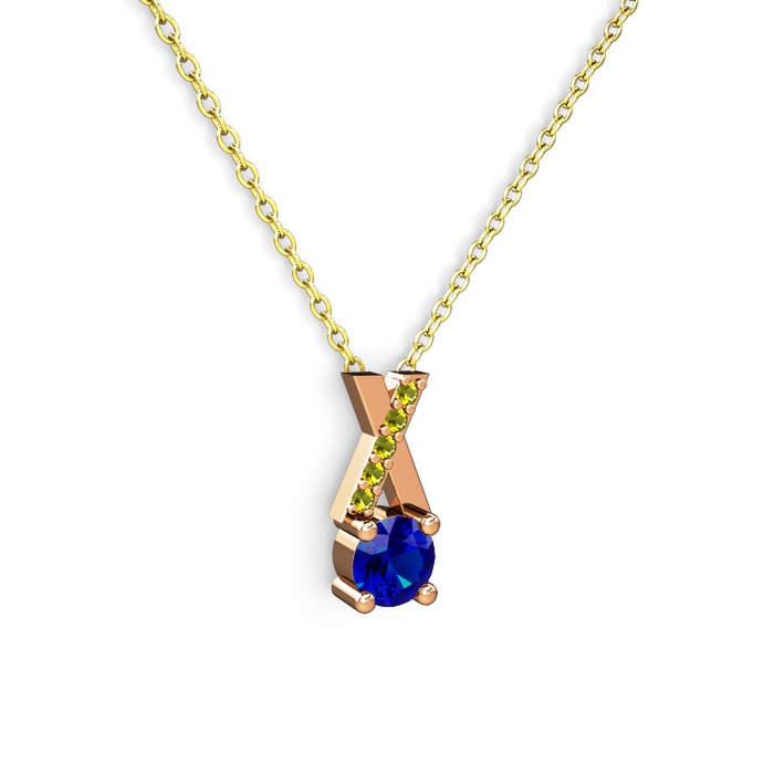 Lab safir ve peridot 18 ayar rose altın kolye (40 cm altın rolo zincir)