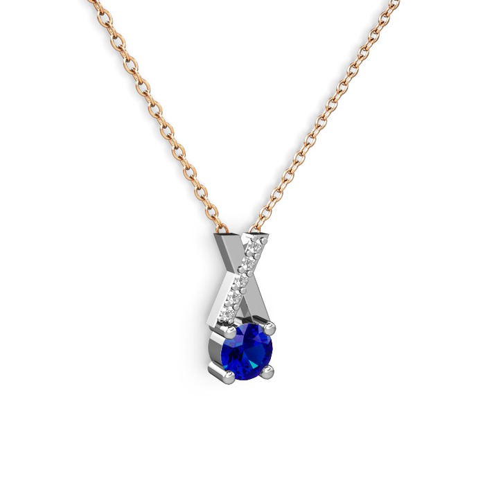 Lab safir ve pırlanta 18 ayar beyaz altın kolye (0.075 karat, 40 cm rose altın rolo zincir)